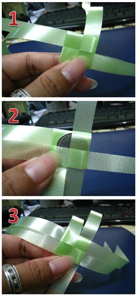 2. ใส่เหรียญแล้วพับริบบิ้นกลับมาทับเหรียญ ตามรูปที่ 2-3